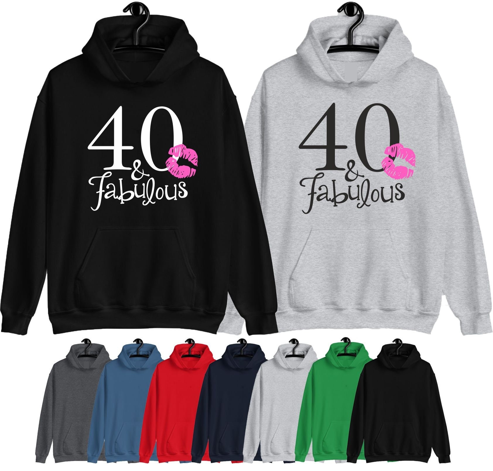 40 And Fabulous 40th Birthday Hoodie Forty King Queen Lips Etsy